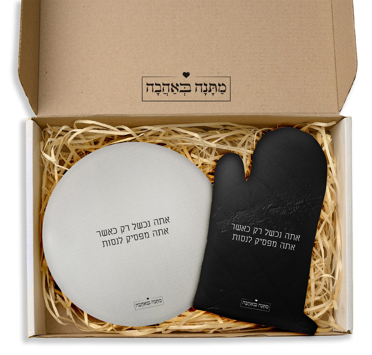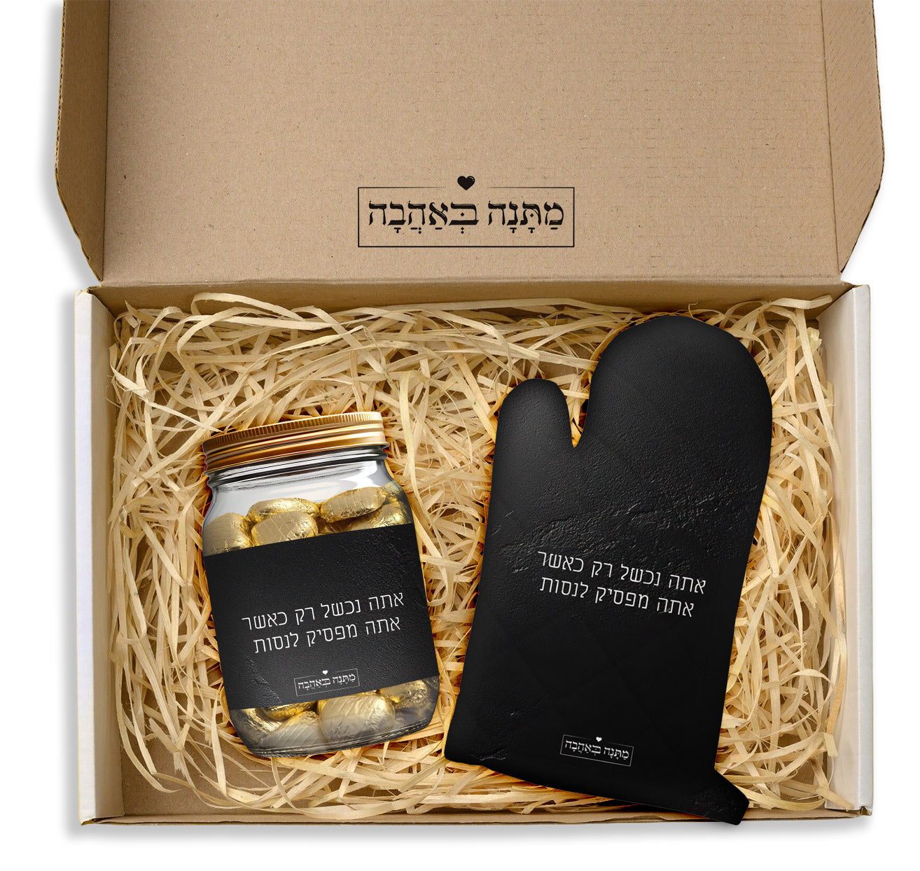 מארז מתנה למטבח דגם סלע שחור: כפפה לתנור + צנצנת שוקולדים (גודל רגיל)