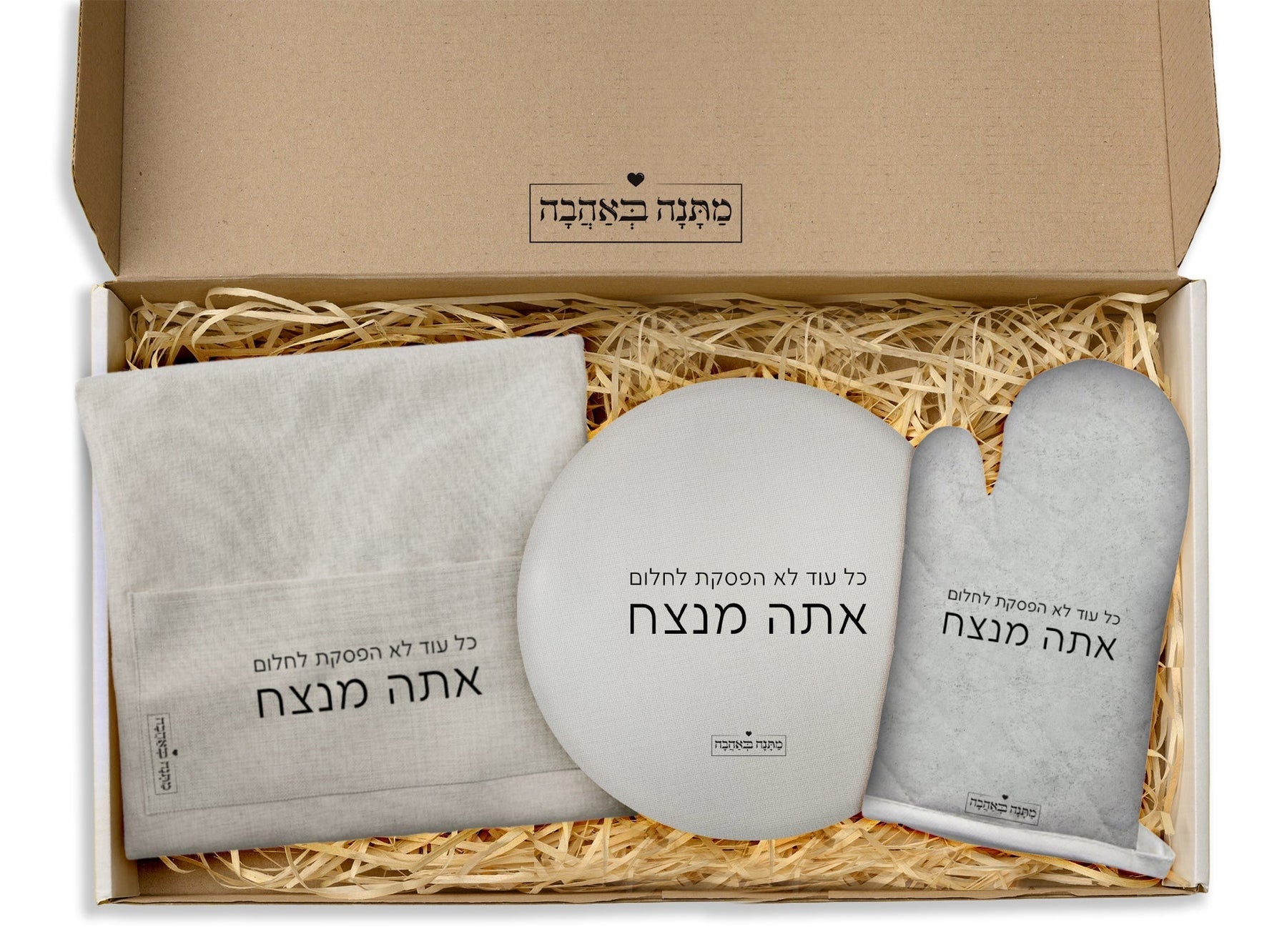 מארז מתנה למטבח כולל שם והקדשה אישית - דגם אבן (כל הגדלים)