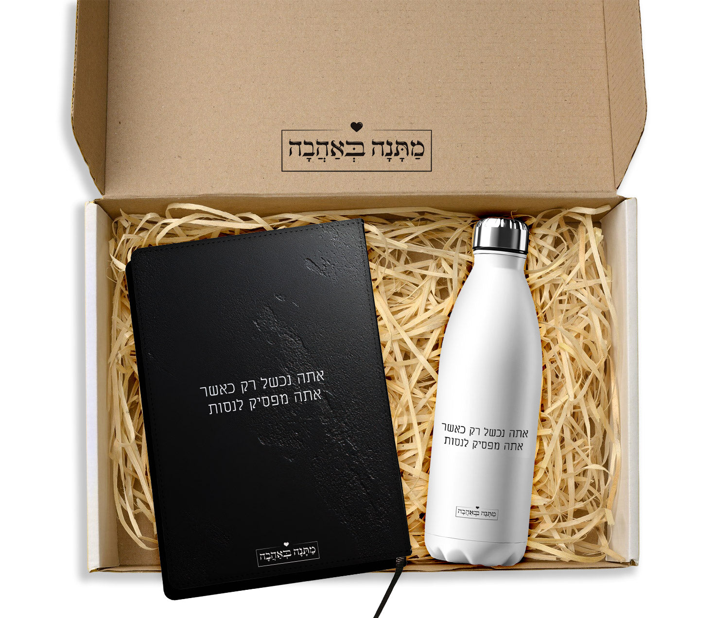 מארז מתנה למשרד דגם סלע שחור: מחברת עור + בקבוק תרמי (גודל רגיל)