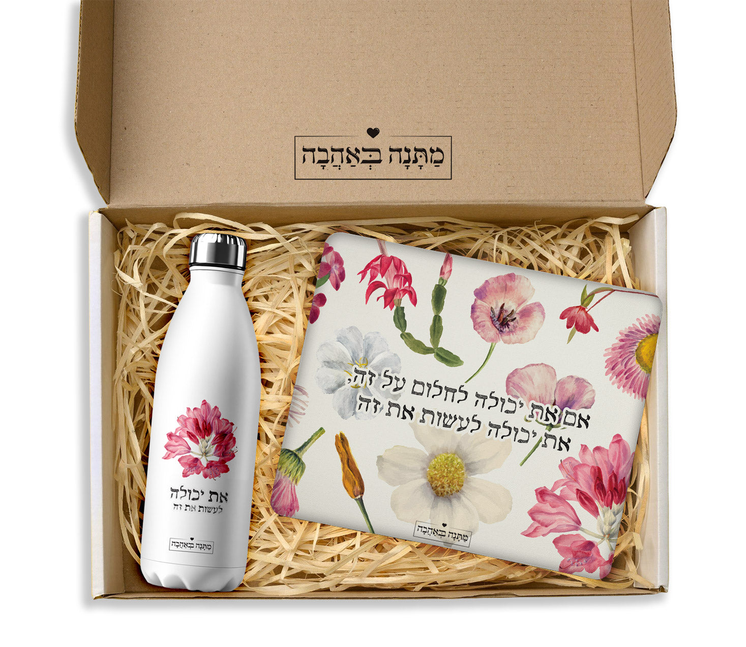 מארז מתנה למשרד דגם פרחי בר: פד לעכבר + מחברת עור (גודל רגיל)